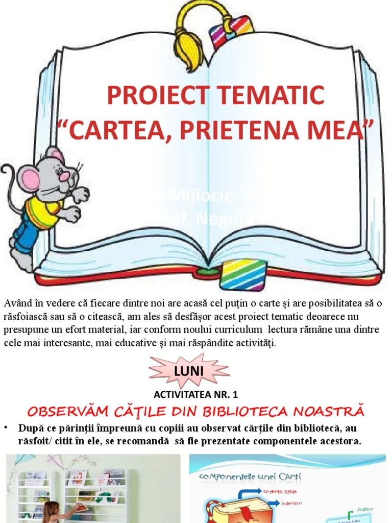 Proiect tematic „cartea, prietena mea". Ajunge să faci ca lumea să nu le mai citească". În urmă cu două săptămâni, când am început unitatea tematică ce ştim despre cărţi?, am lansat un nou proiect tematic, intitulat cartea mea având ca perioadă de desfăşurare 3 săptămâni + săptămâna de vacanţă. 14.11.2008 · proiect tematic ,,cartea, prietena mea. Elevii mei au de realizat o …. Raicaviorica 3 au spus mulţumesc.