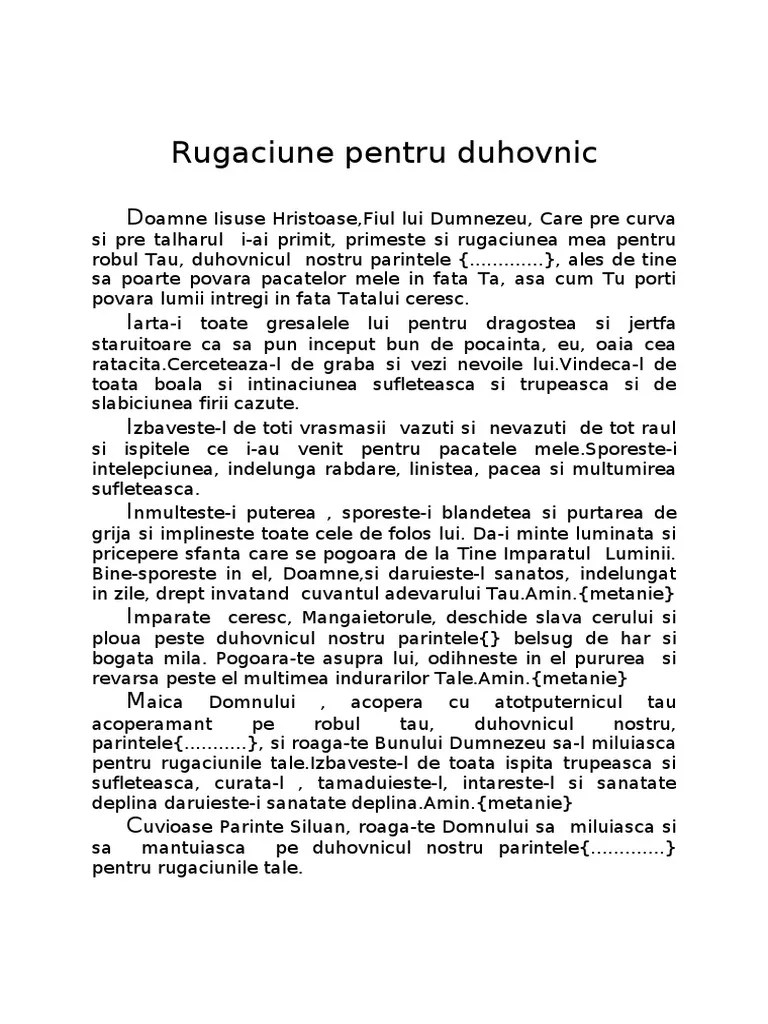 Doamne, trimite parintelui meu harul sfantului tau duh si, pentru rugaciunile nascatoarei de …. Rugăciune către mântuitorul iisus hristos pentru izbăvire de boală. 25.02.2020 · rugaciune ortodoxa pentru parintele duhovnic O, preasfântă stăpână, născătoare de dumnezeu fecioară, împărăteasa cerului şi a pământului, ascultă strigarea sufletului meu şi primeşte păcătoasa mea rugăciune, preacurată maică a lui dumnezeu, pe care o aduc pentru părintele meu duhovnic, îndureratul robul tău …. Rugăciune către domnul nostru iisus hristos, alcătuită de sfântul isaac sirul.